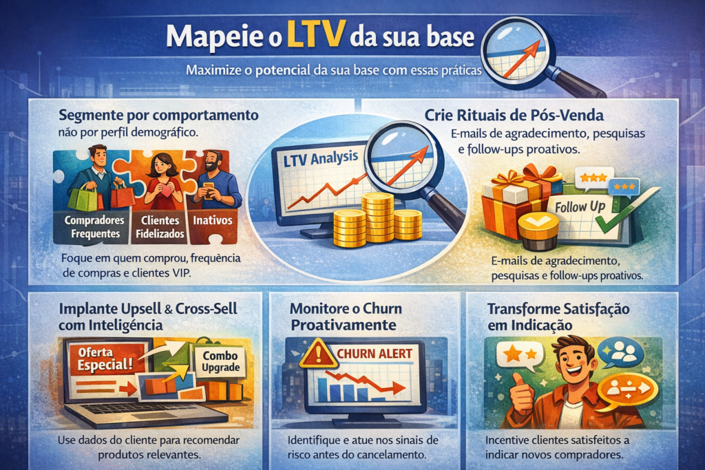 - Mapeie o LTV (Lifetime Value) da sua base.