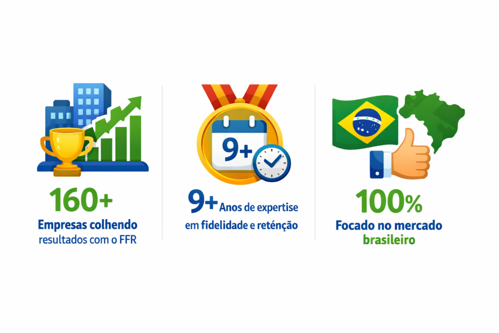 A Loop+ desenvolveu um método exclusivo e inovador no mercado brasileiro: o FFR, uma organização de boas práticas de fidelização e retenção construída ao longo de anos de experiência com centenas de empresas. O FFR não é teoria. É um caminho estruturado que garante resultados rápidos e concretos para quem o aplica.